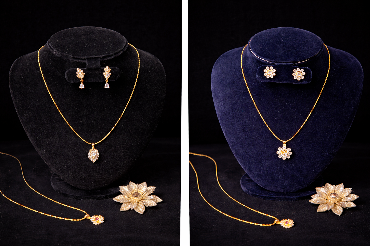 A beautifully curated bridal combo featuring two elegant necklace sets — one classic dangle pendant set and one graceful bird motif pendant set. Designed for brides and festive wear, this combo offers versatility, elegance, and timeless charm, perfect for weddings, receptions, and special occasions.
