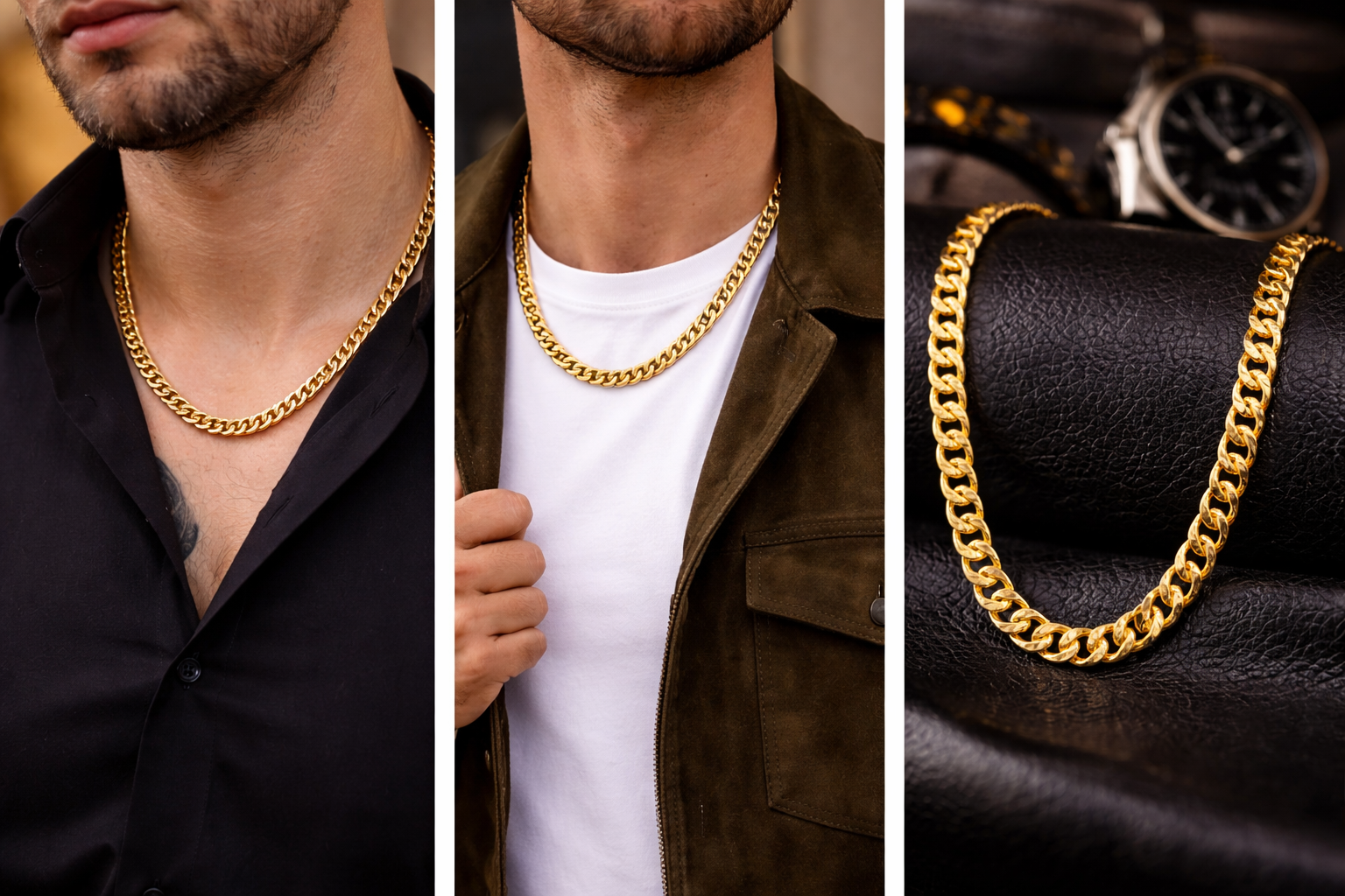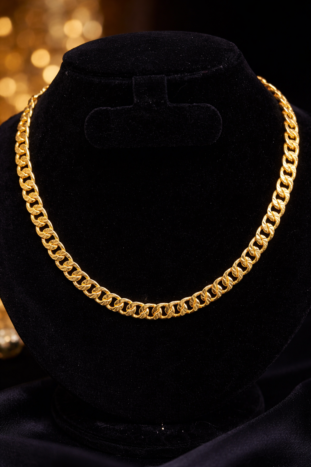 A bold and timeless men’s chain crafted in a classic Cuban link design with a rich gold-tone finish. Designed to offer strength, shine, and everyday versatility, this chain adds a confident statement to both casual and formal outfits. Its solid links and smooth polish make it ideal for daily wear or special occasions, perfect for men who prefer a strong yet elegant accessory.